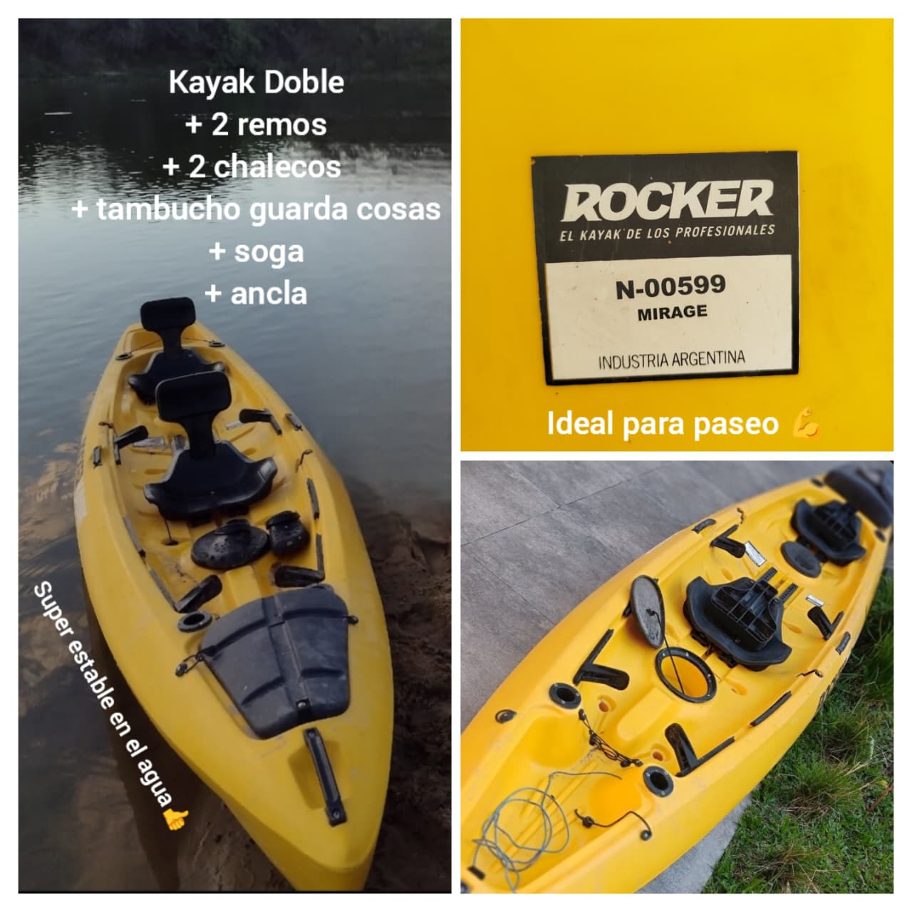 Nautica Kayak doble Rocker Mirage 2 remos +2 chalecos +tambucho $900.000 3624-856502
